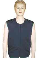 产品说明: 采用超高强高密度聚乙烯机织布和无纺布制成的超高强高密度聚乙烯无纺复合片制造的防刺服。能有效地阻挡刀具、匕首等冷兵器的刺、割、砍的攻击,保护人体躯干和内脏免遭伤害。防刺能力极强,防护面积大,重量轻,穿着柔软舒适。