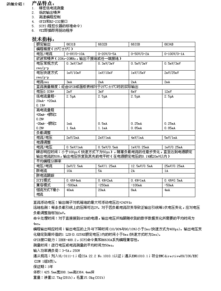 电路直流稳压电源     型号:6631B/6623B/6633B/6634B