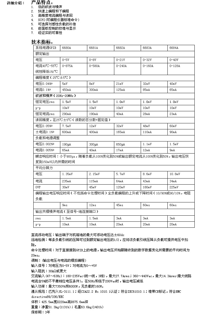 单路直流稳压电源             型号:6680A/6681A/6682A/6683A/6684A