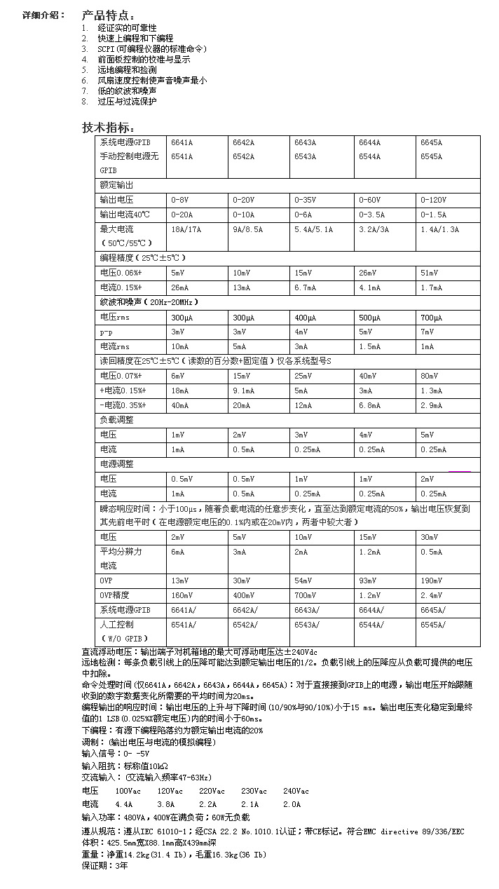 电路直流稳压电源            型号:6641A/6541A