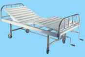 规格:2020×900×580 材质:SUS304不锈钢及冷轧钢板喷塑 功能与特点:背部上升75度,脚部上升40度,不锈钢活动床头,不锈钢床脚,折板喷塑床面,φ100脚轮。可选配护栏、输液架、杂物架、餐桌板、引流挂钩。