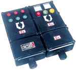 产品特点 ● ZXK8030防爆防腐控制箱适用于交流50HZ、220/380V,直流电压力220V的线路中,远距离集中控制多台电动机的起动与停止,包括信号指示及电流指示等等。 ● 控制箱由增安型外壳,隔爆型元件(指示灯,电流以表,按钮,开关)及把接线端子等组成。 ● 外壳采用玻璃纤维增强不饱和聚树脂模压而成。具有外形美观,耐腐蚀,抗静电耐冲击及稳定性好等优良性能。 ● 可钢管或电缆布线。 ● 该产品有多种变化,可根据用户提供的电气原理图而制作。 ※ 由于控制箱元件布置千变万化具体元件排列要根据用户订货时提供的电气原理图,共同研究元件排列示意图或提出要求由我厂进行设计和制造。 |