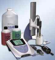 应用名称: 氯离子的测定(奶酪中氯离子的测定) 定货号: 410P-56 主机: 4-star台式PH/离子计 电极: Orion ionplus氯离子电极 PH标准液: 其他标准液和溶液: 5%氯化钠标准液(0.856M) 氯离子标准液(100ppm),475mL 氯离子标准液(1000ppm),475mL 离子强度调节剂,475mL 电极填充液(Optimum result B),5×60ml 附件: 搅拌器 电极支架