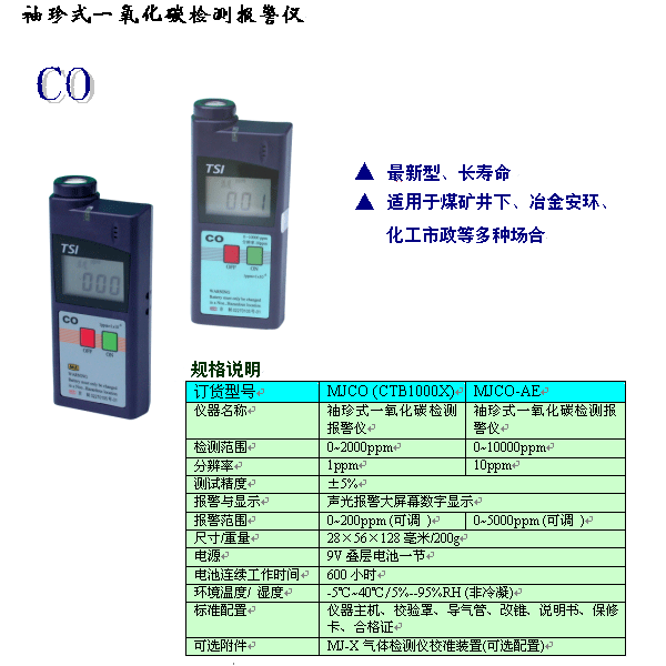 袖珍式一氧化碳检测报警仪 (液晶显示)      型号:MJCO