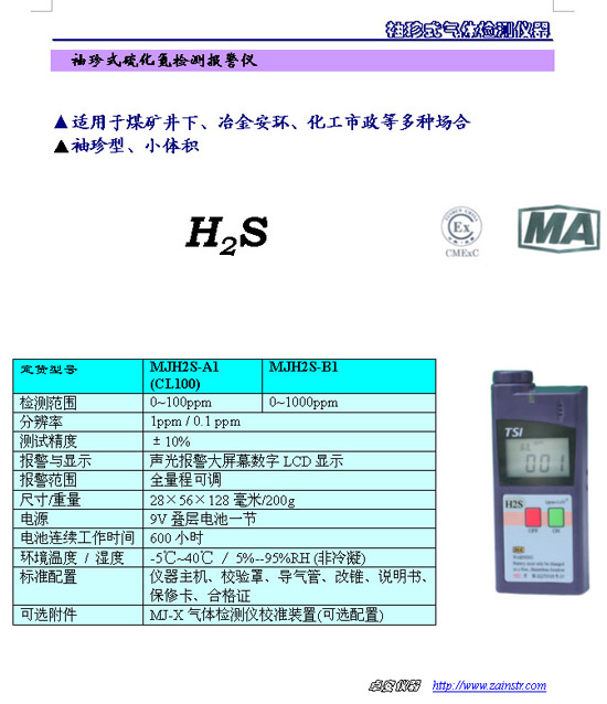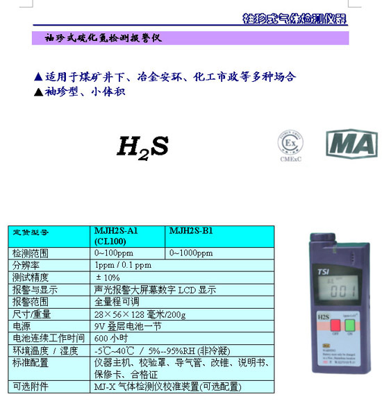 袖珍式硫化氢检测报警仪      型号:MJH2S