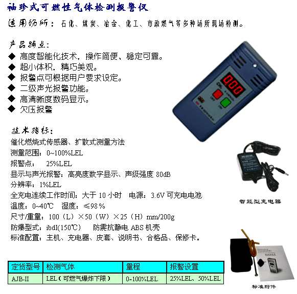 袖珍式可燃气体检测报警仪      型号:AJB-II