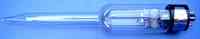 本规管按ZBY177-83标准生产,外壳使用DM-305玻璃制成.专供测量真空系统的压强,其量程为10~10-1Pa 基本参数 高度(包括管针)…≤250mm 管壳直径…………35±1mm 排气管直径……………15.5±0.5mm 热丝加热电流 …………90-130mA 真空度(不低于)……10-2Pa 当压强在 2~12Pa范围时,单个规管的校准曲线对标准的压强偏差不超出±10% 电极接线 2.7 热丝 4. 热偶 (-) 5 . 热偶 ( + )