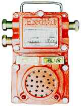 KXH-1型矿用隔爆兼本质安全型声光组合信号装置,主要用于煤矿井下含有煤尘及爆炸性气体的工作场所。电源电压为127V、36V两种。通过电源连线实现载波对讲通讯。由矿用防潮扬声器和高亮发光二极管实现声光信号。 该产品集打点按钮、防爆灯、防爆电铃、三通接线盒为一体,隔爆接线腔内设打点按钮,并有三个出线口,取代了打点按钮和三通接线盒,用高亮发光二极管和矿用防潮扬声器取代了防爆灯和隔爆电铃。 1、信号发送:按下本台隔爆腔内的打点发送按钮,可向本台和联机的各台发出音频联络信号(打点)。 2、信号接收:联机各台可通过电源线载波接受任一台发送的信号,通过扬声器发出>85dB声响信号,并通过发光二极管发出在30米以内可见的光信号。 3、单工对讲:本装置在不改变现有煤矿隔爆型信号装置和电源接线方式的情况下,各台通过电源线载波实现单工对讲通讯功能。
