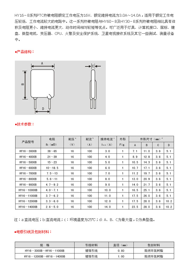 引线型热敏电阻              型号: HY16-B-HY16-8000B