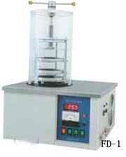 真空冷冻干燥技术,简称冻干,又称升华干燥,广泛应用于药品、生物制品、化工及食品工业,对热敏性物质如抗生素、疫苗、血液制品、酶激素及其他生物组织,冻干技术非常适用。 主要特点: 采用进口全封闭制冷机组、温度低、捕水能力强。采用风冷方式散热,不需水冷却; 真空连接采用国际通用标准件,拆卸安装简易方便,密封性能可靠; 冷阱温度、样品真空度均采用LED数字显示,简洁明确; 特定设计的触摸软键快速准确地实现各功能的设置,操作简单方便; 透明钟罩式干燥室,自然加热,安全直观; 特殊设计的不锈钢样品架,样品盘间距可调,层数自由设定; 不锈钢台面,清洁卫生,美观耐腐蚀; 性能稳定操作简便,噪音低。 FD-1C技术指标 冷凝温度:≤-45℃ 真空度:20Pa以上(空载时) 冻干时间:物料厚度不超过10㎜时,冻干时间一般在24小时左右 干燥室尺寸:Φ262×480(㎜) 同时最多挂瓶为8只,冷干瓶分为以下几种规格:1000ml、500 ml、250 ml、100 ml,可根据需要自由组合 样品盘:散装物料盘直径200 ml,共四层,可放物料约1200ml(厚度10 ㎜),或放置直径22㎜的瓶子约256只 电源要求:220V±10% 50HZ 800W 标准配置:台式主机,2升真空泵,有机玻璃干燥室,物料架各1件; 物料盘4个;橡胶阀8个;玻璃干燥瓶8只 主机尺寸:550×550×300(㎜) FD-1技术指标 冷凝温度:≤-45℃ 真空度:20Pa以上(空载时) 冻干面积:0.12㎡ 盘装物料:1.2升 捕水能力:1.5㎏/24h 样品盘:尺寸如下 普通型:Φ200㎜×4层 压盖型:Φ180㎜×3层
