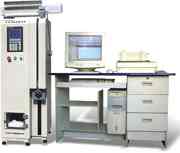 【适用范围】: 用于天然及化学纤维纯纺或混纺纱线断裂强力、断裂伸长率等数据的测试。 【符合标准】: GB/T14344-93 《合成纤维长丝及变形丝断裂强力及断裂伸长试验方法》 ISO2062-1993(E) 《纺织品─卷装纱─单根纱断裂强力和断裂伸长率的测定》 GB/T3916-97 《单根纱线断裂强力和断裂伸长的测定》 【技术特性】: 测试过程自动,无认为因素干扰; 中文菜单式操作,简单明了、易学易用; 自动吸除废纱,测试过程中无须人工清除废纱; 最大保存1000次测试数据,可随时查询、打印; 具有断电自动保护数据功能,能保证试验连续进行; 具有自检功能,能自己诊断故障点,并显示故障点位置; 具有手动测试功能和自校正功能,应用更为广泛。 【技术参数】: ⑵拉伸方式:定速拉伸、定时拉伸 ⑶显示方式:320×240高亮蓝色液晶屏显示 ⑸夹持距离:500±1mm ⑹最大伸长:400mm 误差±0.5mm ⑻拉伸速度:10-3000mm/min连续可调 误差±2% ⑼采样频率:1000次/秒 ⑽预加张力:0-100cN ⑾测力范围:0-5000cN 误差:示值的±0.5% ⒂一次装纱:MAX 20管 ⒃间隔取样长度:任意设定 ⒄使用电源:AC220V±10% 50Hz ⒅仪器外形尺寸:600×500×1450mm ⒆总重:63Kg