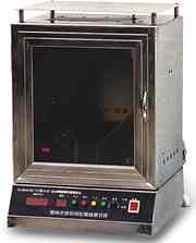 【适用范围】: 该仪器适用于测量易燃纺织品穿着时一旦点燃后燃烧的剧烈程度和速度 【符合标准】: GB/T14644—93《纺织织物燃烧性能45°方向燃烧速率测定》 【技术参数】: 1、蔓延计时范围:0~999.9S 分辨率0.1S 2、箱室工作温度显示范围:0~99℃ 分辨率1℃ 3、点燃时间: 1S 4、点火器型号:4 号注射器 5、试样夹尺寸 外形:204mm×78mm 内框:165mm×40mm 6、点火器顶端离试样面距离:8mm 7、工作室尺寸与外形尺寸 工作室尺寸:300mm×360mm×400mm 外 形 尺 寸:440mm×370mm×540mm 8、电源:AC220V 50Hz